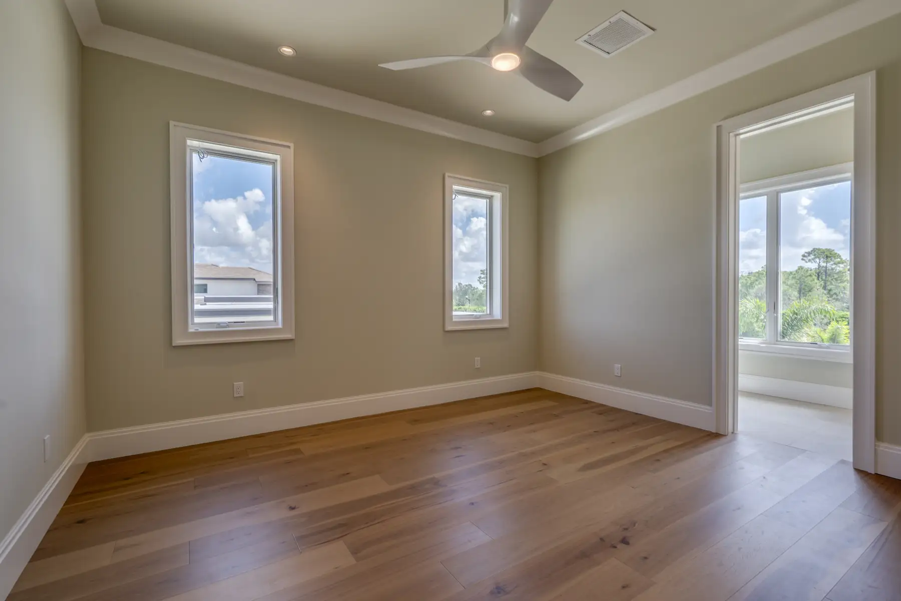 - Opulent owner’s suite with lavish bath fixtures and expansive closet spaces.